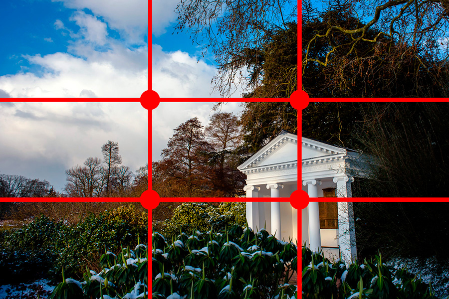 Divide the frame into 9 equal rectangles, 3 across and 3 down. Place the important element(s) of the scene along one or more of the lines or where the lines intersect.